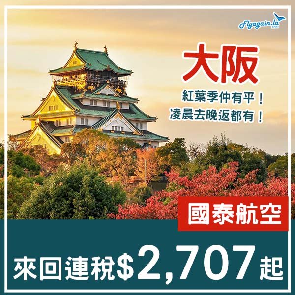 【大阪】多航班選擇!紅葉季仲有平!國泰航空來回大阪連稅$2,707起!10月至12月指定日子出發
