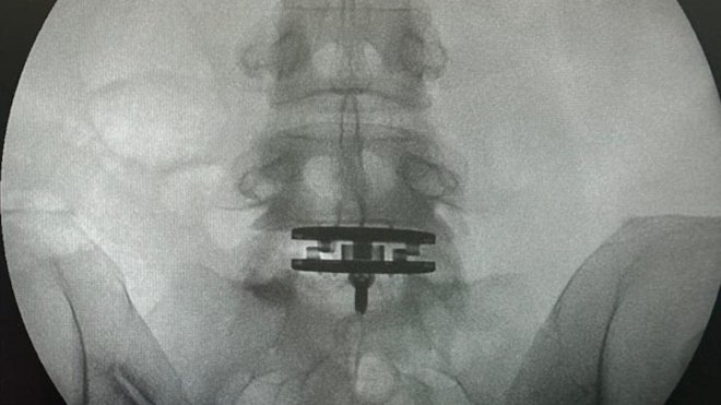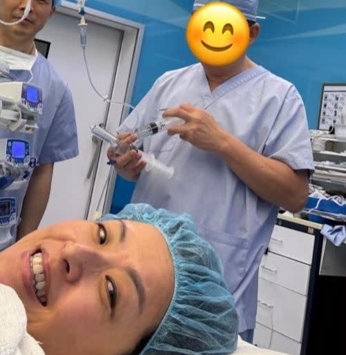 曝光多張X光照片以及與醫護人員的合照,她躺在手術台上自拍,透露她接受醫師的建議進行椎間盤置換手術,更指出,這次手術是她生完女兒後最重要的手術,期盼術後能繼續做她最喜愛的運動。