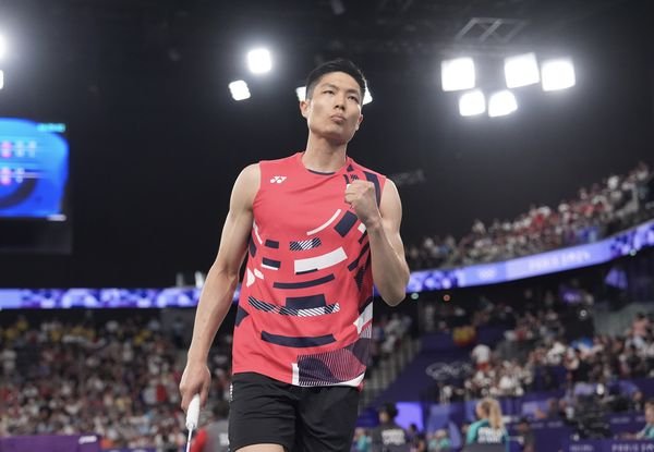 今日,周天成對決日本選手奈良岡功大,兩人過去交手時他從未輸過,此戰他也展現強大實力和狀態,讓對手無奈到丟球拍,而他也以21比12、21比16勝出,拿下8強門票。這次獲勝也讓周天成連續3屆闖進男單8強,2016年他在里約奧運拿下第5,上屆的東京奧運則是止步8強,外界也開始期待他這次是否能成功把獎牌抱回家。