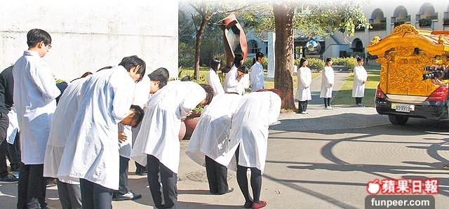 《蘋果》報導,高醫大解剖學科助理教授何宛怡說明,大體老師勸募不易,若有人願意當大體老師,校方會先把約8公升防腐劑打進遺體血管,再將屍身浸泡福馬林液2至3年,才能完成防腐。當大體老師授課一學期後,會舉辦隆重告別式,火化遺體。