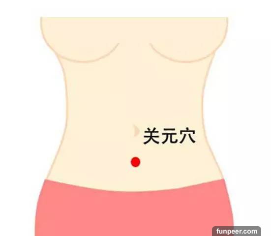 關元穴位於肚臍下3寸,4指橫寬處把食指放在肚臍無名指附近便是關元穴熱敷能治療痛經▼