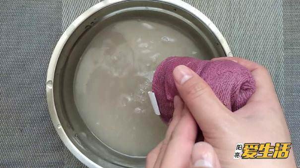 油膩的抹布完全侵入水中,泡10分鐘