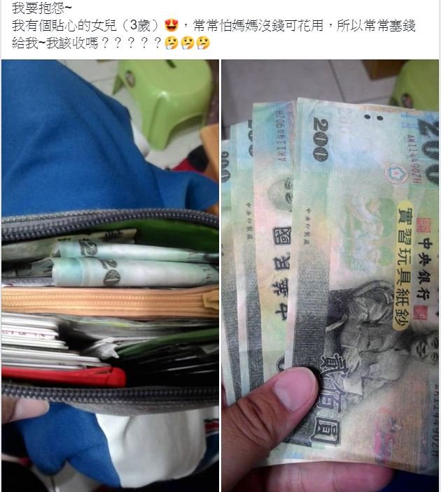 日前就有一位媽媽表示,女兒怕她錢不夠花,總會偷偷塞鈔票給她,只是當網友仔細一看,卻發現到不對勁的地方啊...