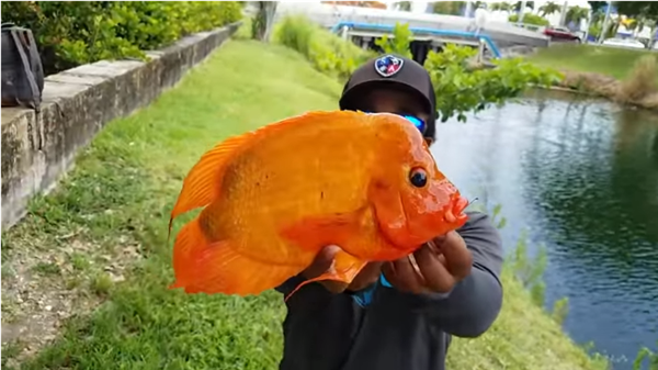 但是眼尖的網友似乎並不買帳,很多人留言告訴他,這只魚並不是金魚,而是紅魔麗體魚,屬於慈鯛科,因為外觀很像金魚,所以常常被人誤認為是金魚。