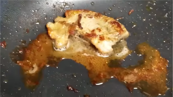 然後放到鍋中煎熟,在熱騰騰的奶油中,金魚肉聞起來也沒什麼異常。