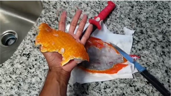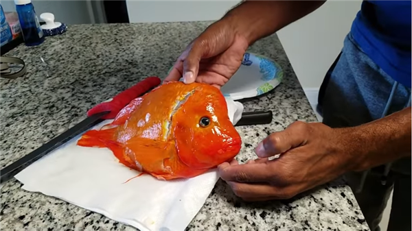 國外有一位男子,竟把從池子裡吊起來的金魚給吃掉!沒想到這種觀賞魚,竟然一切開來吃是這樣!