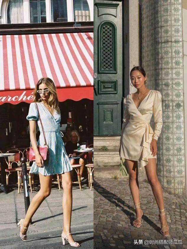 法式裙的基礎設計,在大方向上抓住了很多女生想要顯瘦的穿搭心理,比如裙擺的位置微微下垂,放寬的輪廓就很好遮肉顯瘦。裙擺五分長短,一般都可以藉助擴大的橫向比例,幫助你優化窄腰寬臀的線條,大多數白人女生會用低跟鞋去組合法式裙,這也是我們可以去學習的組合方式。