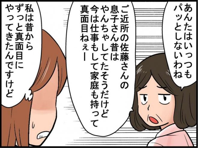 「你真的不太行耶,你看佐藤家的兒子以前出來混的,現在也認真工作還成家了,人家多麼努力啊!」