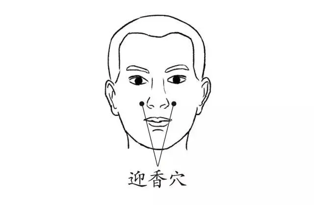迎香穴:此腧穴在鼻翼外緣中點旁,當鼻唇溝中。