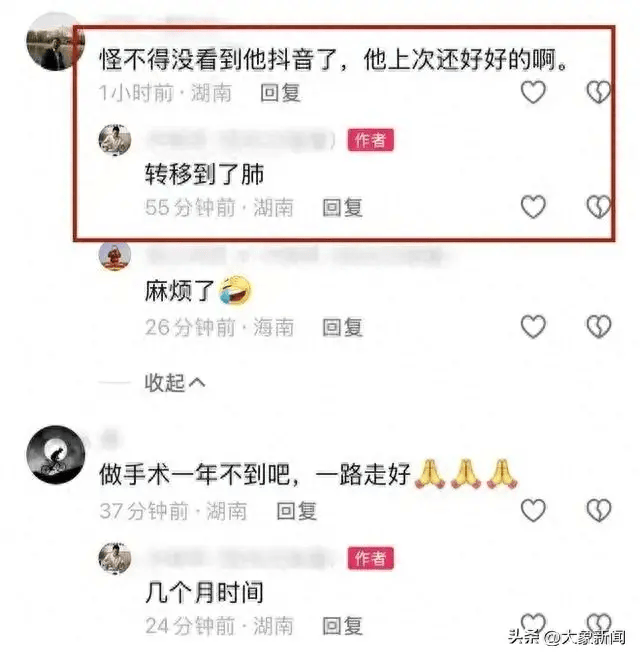 可惜的是因為發展太快,他都來不及與粉絲告別,最後一部電影的動態也是讓人感慨不已,從其簡短的話語中不難看出,他非常渴望生存,為此他留言:老天爺,在夢裡跟你講的話…