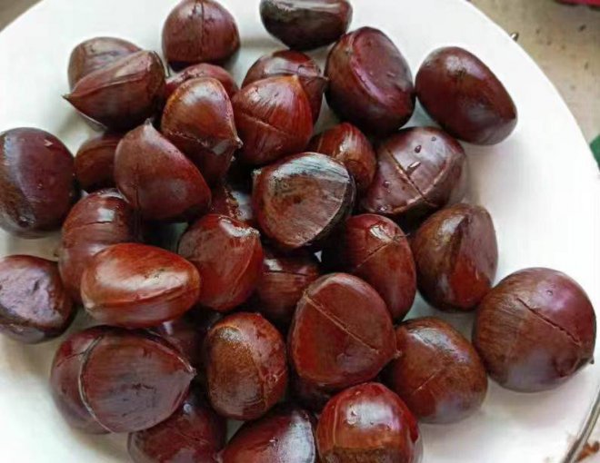 說到板栗,很多人自然而然的會想到糖炒栗子,其實打栗子的樂趣很少有人知道,栗子在去殼之前,那可是很厲害的,全身都是刺,宛若一個小刺蝟,採摘很困難,一般農村人都會用一根竹竿在樹上敲打,這樣成熟的板栗就會紛紛落地,這就是我們常說的「打栗子」,想一想場面還是很壯觀的。