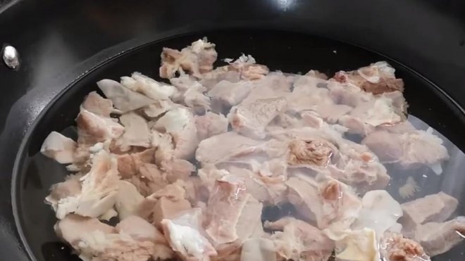 3把清洗好的羊肉放在溫水中給它清洗乾淨,然後控干水分。然後再把準備好的羊肉直接放入乾淨的砂鍋內。在裡面加入3000毫升的溫水,然後再放入準備好的燉羊肉料,蓋上蓋子大火燒開。
