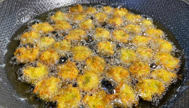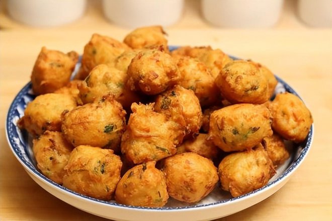 4.用中火炸至定型,然後撈出把油溫燒至九成熱。把準備好的丸子再次下鍋油炸。炸至表面金黃酥脆就可以撈出吃啦。