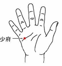 按壓心臟排毒要穴:這是指少府穴,位置在手掌心,第4、5掌骨之間,握拳時小指與無名指指端之間。按壓這個穴位不妨用些力,左右手交替。