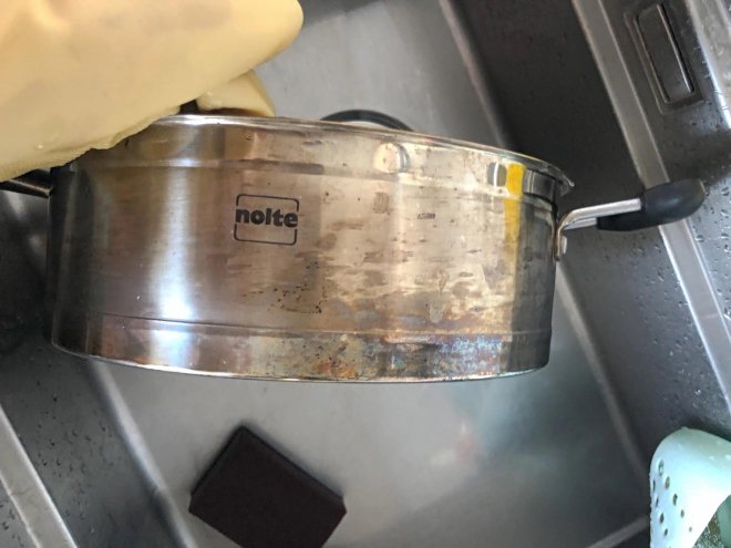 溶解之後用干抹布或者是濕巾擦一下,就可以將上面的黑色成分擦掉,鍋具就可以煥然一新了。