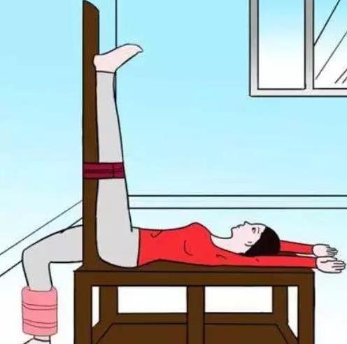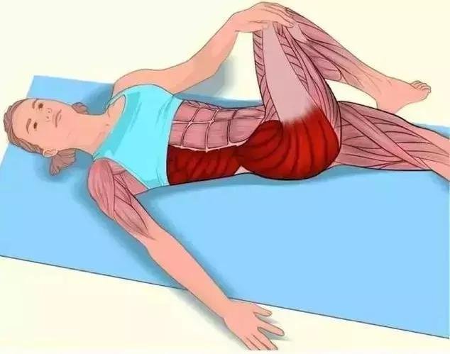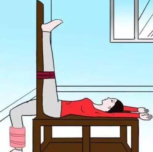 3、身體仰臥,右腿伸直,靠在門框上,使臀部貼緊門框,左腳落地,整個腳掌儘量觸及地面,雙手舉起,貼近雙耳,平放在桌上,堅持5分鐘一次;(其間左腳也可用踏單車的姿勢擺動,以便放鬆髖部關節;)