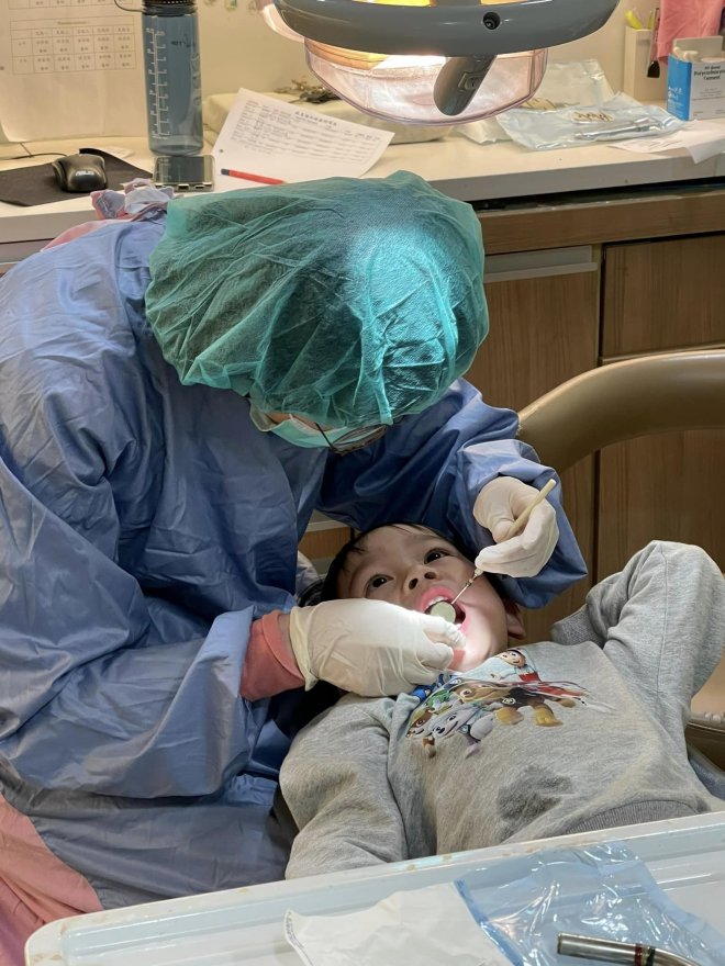 一開始看到孩子滿嘴血的她相當驚慌,搞不清楚到底傷到哪,冷靜下來才發現是下排牙齦不斷冒血,發現牙齒在搖晃。黃瑄表示,她當下考慮到牙齒處理可能需要複診,當機立斷買了冰塊及紗布止血,帶著孩子一路從桃園飆回台北長庚急診!