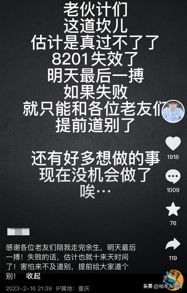 「老夥計們,這道坎兒,估計是真過不去了,8201失效了,明天最後一搏,如果失敗,就只能和各位老友們提前道別了,還有好多想做的事,現在沒機會做了,唉……」