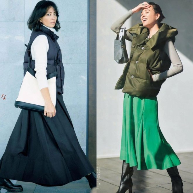 在搭配夾克外套的時候,選擇的裙子盡量不要太短,因為夾克的長度本身就不會超過膝蓋,大多數都是短款為主,所以我們選擇的裙子長度要超過膝蓋。過膝不過踝的百褶裙,不管是跟運動鞋進行搭配,還是組合上尖頭高跟鞋,效果都是很出彩的。