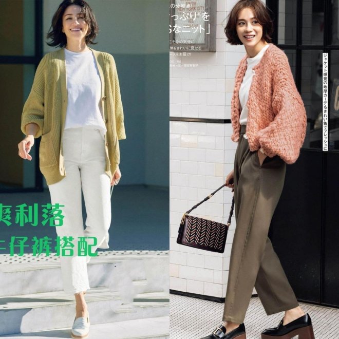 如果是日常生活的話,建議大家可以選擇落肩設計的針織外套,軟糯感十足的針織外套,在裡面疊穿一件基礎款的白色T恤,防風效果會更好。如果你的腰臀線條不是很完美的話,就可以選擇遮臀針織外套;對於五五分和小個子來說,長度不過胯的短款針織外套更合適。