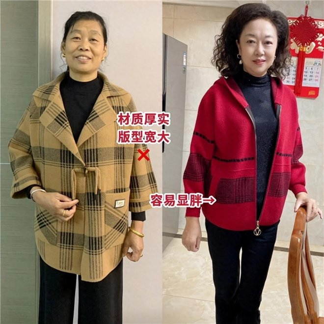 一款外套的材質和版型,都決定了最終的搭配效果,隨著年齡的增長,女性的身材會逐漸發福走樣,在這個時候,如果還去嘗試材質厚實、版型寬大的外套,那麼只會出現顯胖的現象,讓你的身材瞬間胖一圈。