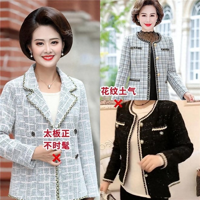有些女人還容易「聰明反被聰明誤」,去冒險嘗試一些過於板正,並且時髦力度不夠的小香風外套。要知道,雖然很多年輕人都很難駕馭小香風外套,穿在身上容易顯得老土俗氣,更別提大齡女人了,駕馭難度高就算了,穿在身上還顯得很突兀。