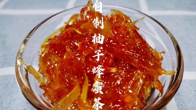 5.晾涼的柚子茶加入蜂蜜攪拌均勻,如果一次性做的太多的朋友也可以用密封罐儲存起來,放入冰箱冷藏。
