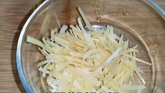 1.買回來的柚子用鹽搓洗外皮,洗乾淨之後把皮削下來,然後把白色的瓜膜刮掉。改刀切成細絲。放入碗里,加入鹽和清水浸泡半個鐘。