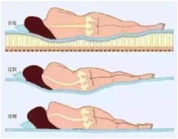 正常脊柱呈「S」形的生理彎曲度,睡覺應選擇軟硬適中的床墊,過軟、過硬的床墊都會對脊柱的生理彎曲度產生不利影響。