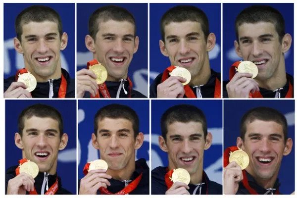 他不僅穩拿四年前那六項賽事的金牌,還順利拿下200公尺自由泳和4×100公尺自由泳接力兩塊金牌。