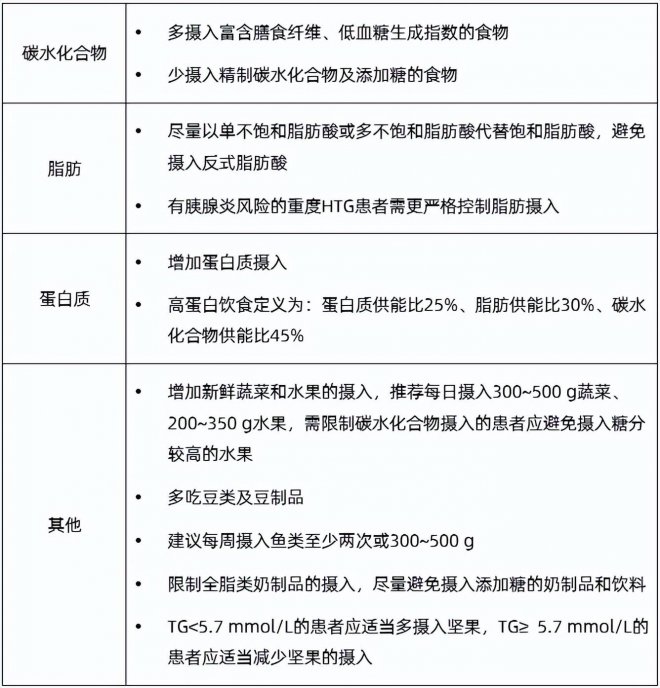 建議TG<5.7 mmol/L的患者限制飲酒,酒精攝入量<30 g/d;TG≥ 5.7 mmol/L的患者需完全戒酒。