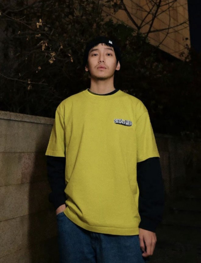 彭昱暢頭戴一頂黑色鴨舌帽,穿著一件黑色的休閑上衣,連同褲子也是黑色的,他雙手背在身後,從容地面對鏡頭。