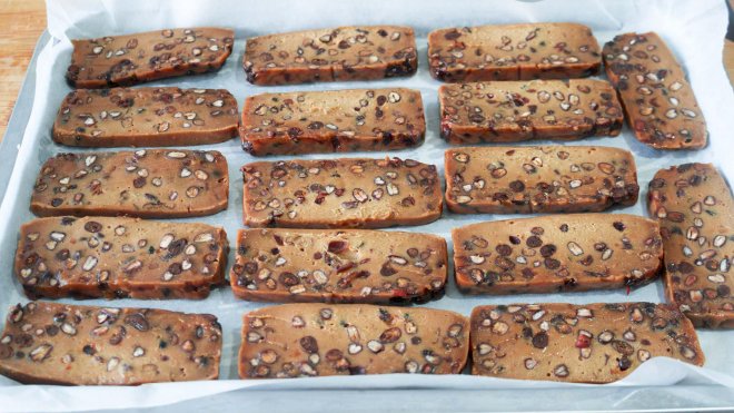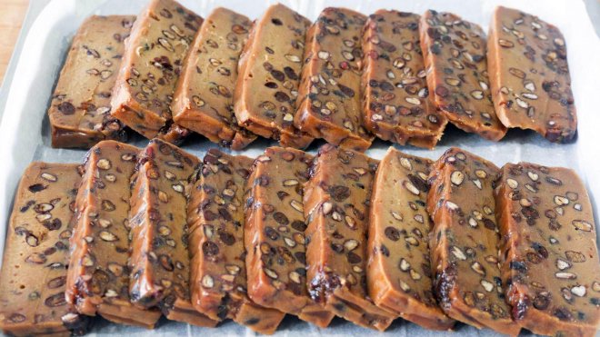 6、接著我們把蒸好的年糕取出來,表面刷上少許食用油防止乾燥,完全冷卻后再來切會比較好切開,這款年糕的口感是軟軟糯糯的,非常的香甜細膩;