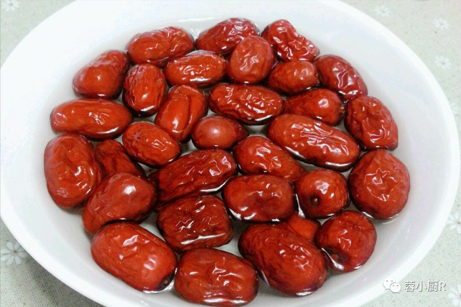 3、將紅棗洗乾淨,放入溫水中浸泡1個多小時,撈出待用;