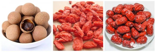 1、干桂圓5-10顆左右,枸杞一小把,紅棗8顆;