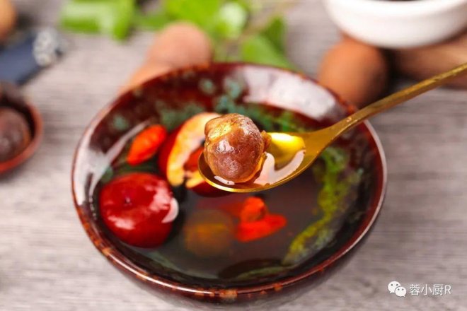 4、在鍋中加入清水500毫升,放入桂圓肉和紅棗,用火煮沸煮透(桂圓和紅棗都是有甜味的,不用再另外加糖了時間到了,燉好的茶倒在杯子里或者保溫杯里,想喝的時候來上一點,暖暖的甜甜的,非常適合冬季手腳冰涼的朋友們;