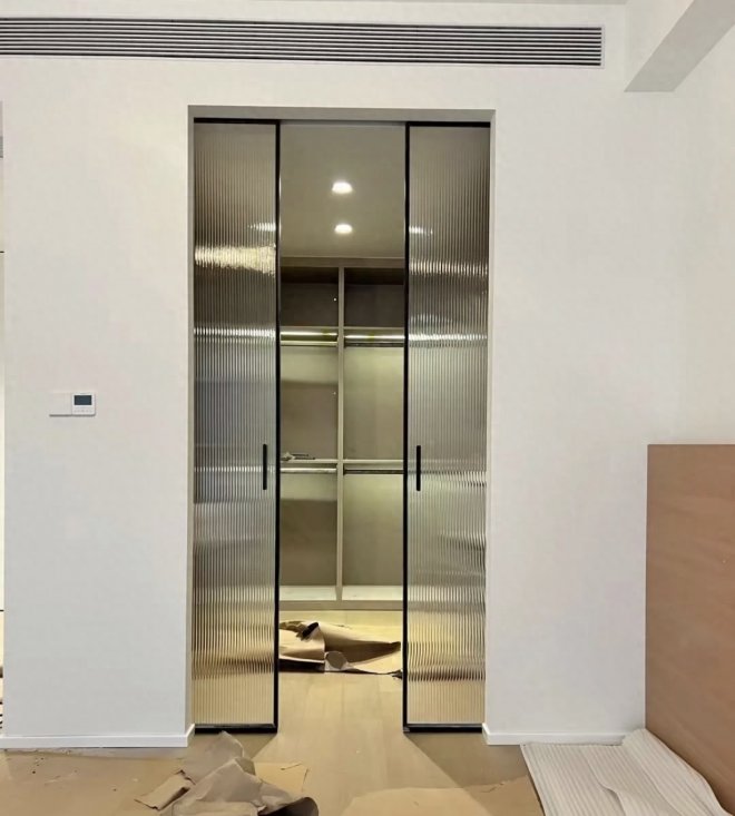 因為口袋門的門板材質也是可選的,木質的、玻璃的均可,所以,其實只要條件允許,基本上家裡所有的空間都可以考慮口袋門,包括卧室、書房、衣帽間等等。
