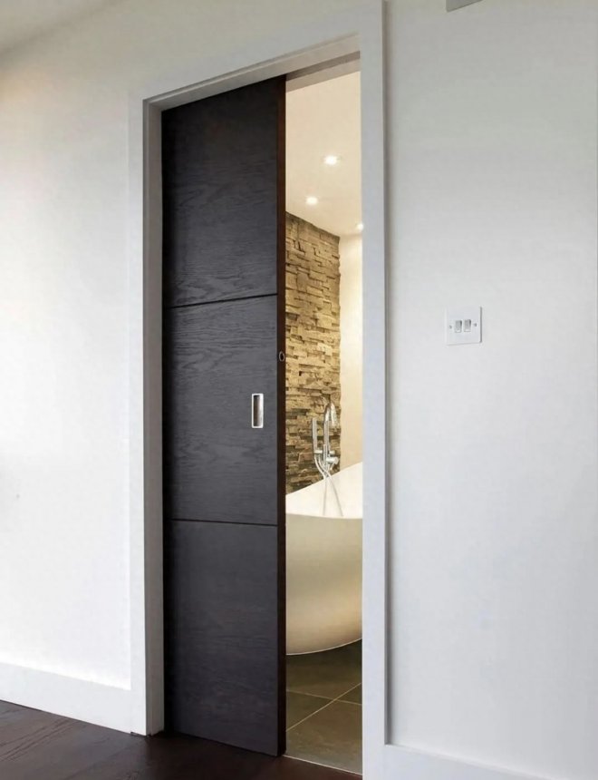 顧名思義,就是門框有個像口袋一樣的設計,可以將門扇隱藏在裡面。