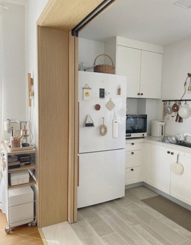 但如今,為了滿足人們對廚房設計更嚴苛的需求,口袋門也逐漸流行起來,不僅顏值滿滿,實用性也很不錯。