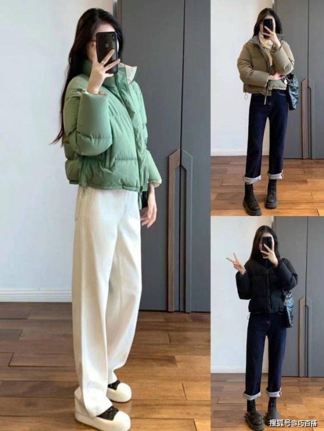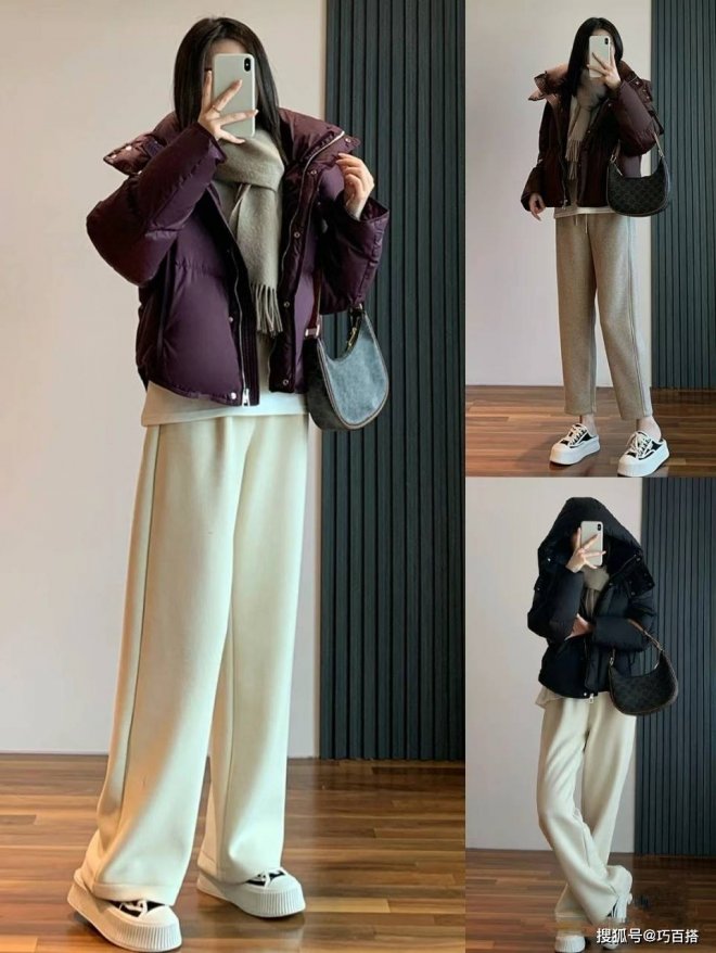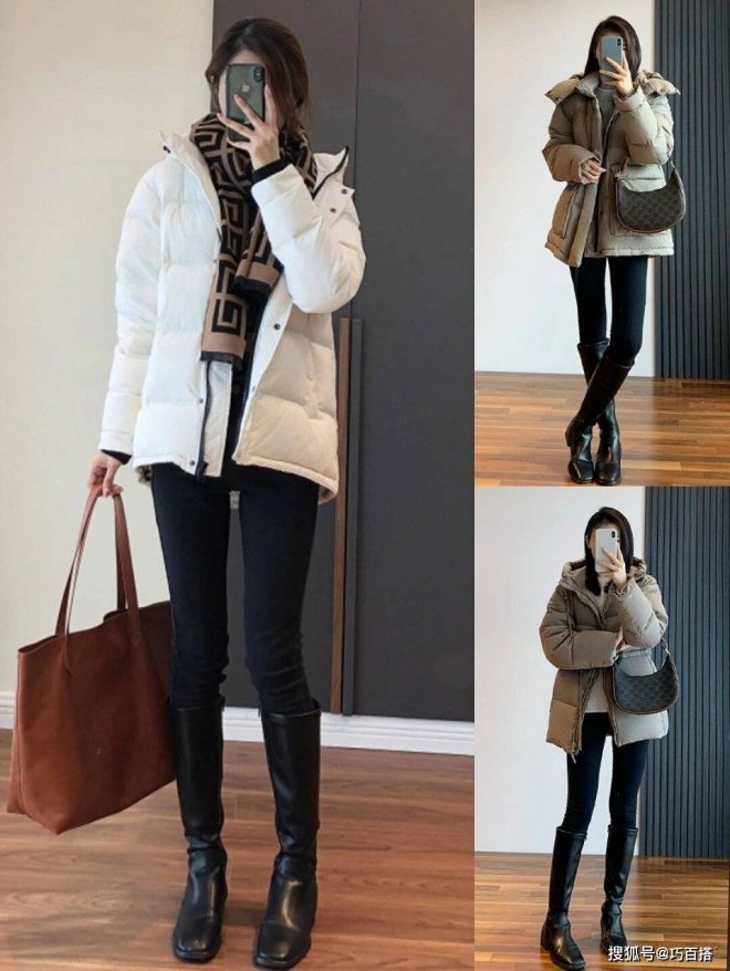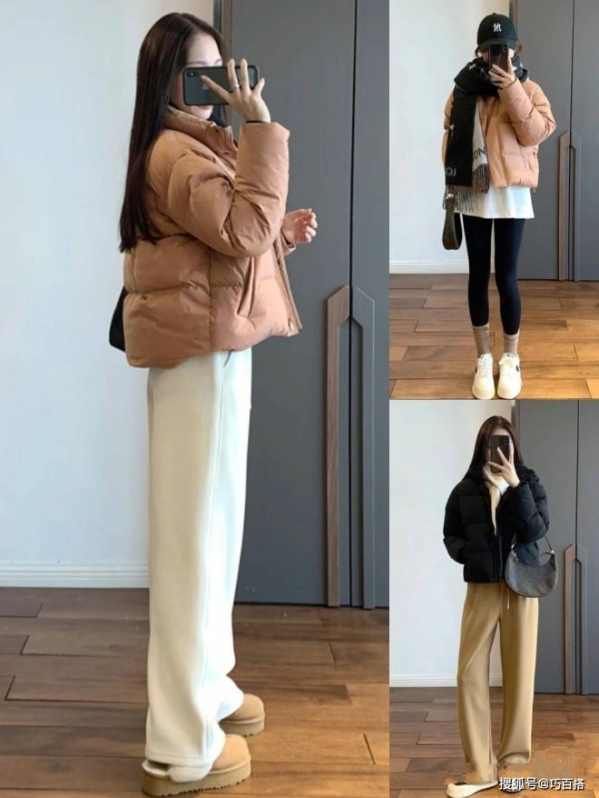 從博主上身效果來看,寬鬆上衣必然是主角,這種情況下,搭配「綠葉」效果的緊身褲氛圍感是最絕的,上松下緊的穿衣風格也是增加整體造型豐富多彩的關鍵,除此之外,大家也可以選用修身短款羽絨服搭配高腰拖地闊腿褲。