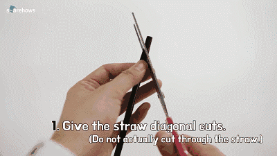 用剪刀交錯剪吸管,剪成魚骨狀。