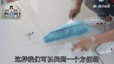 3、用改裝過的掃把掃地,輕輕一掃,頭髮全黏在雙面膠上了。