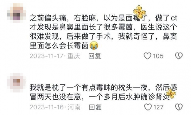 很多網友都分享了自己或者身邊人因為黴菌生病的經歷——
