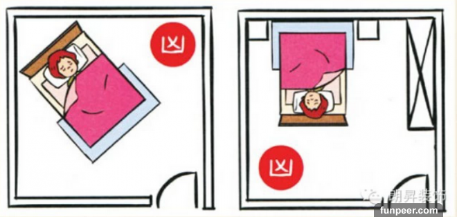 臥室裡除床頭同一平面兩邊可放鏡子,