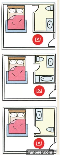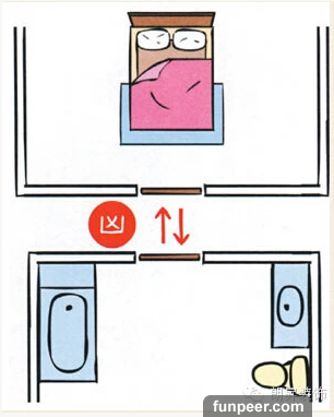 房間裡的廁所對到床,情況比房門對到廁所嚴重,