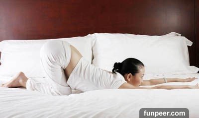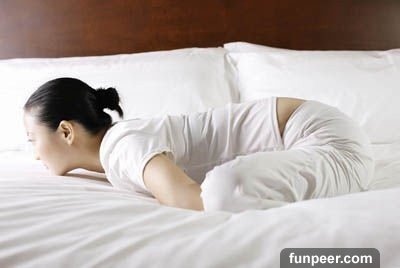 3. 蜥蜴式功效:緩解身體疲勞,去除肩部多餘的脂肪。糾正駝背、扣肩,美化肩部線條。改善便秘。雙膝併攏,跪坐在床上,上半身前傾,胸腹部貼腿,下額貼床。