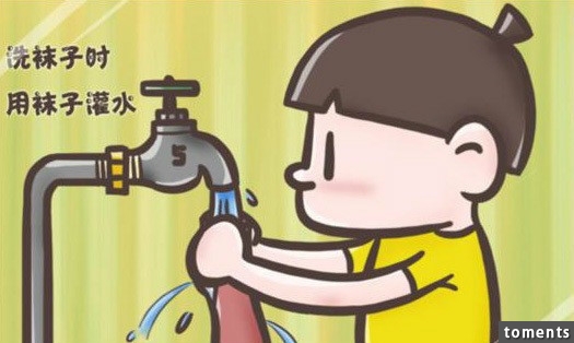 洗襪子的時候用襪子口對著水龍頭接水~試圖裝滿襪子