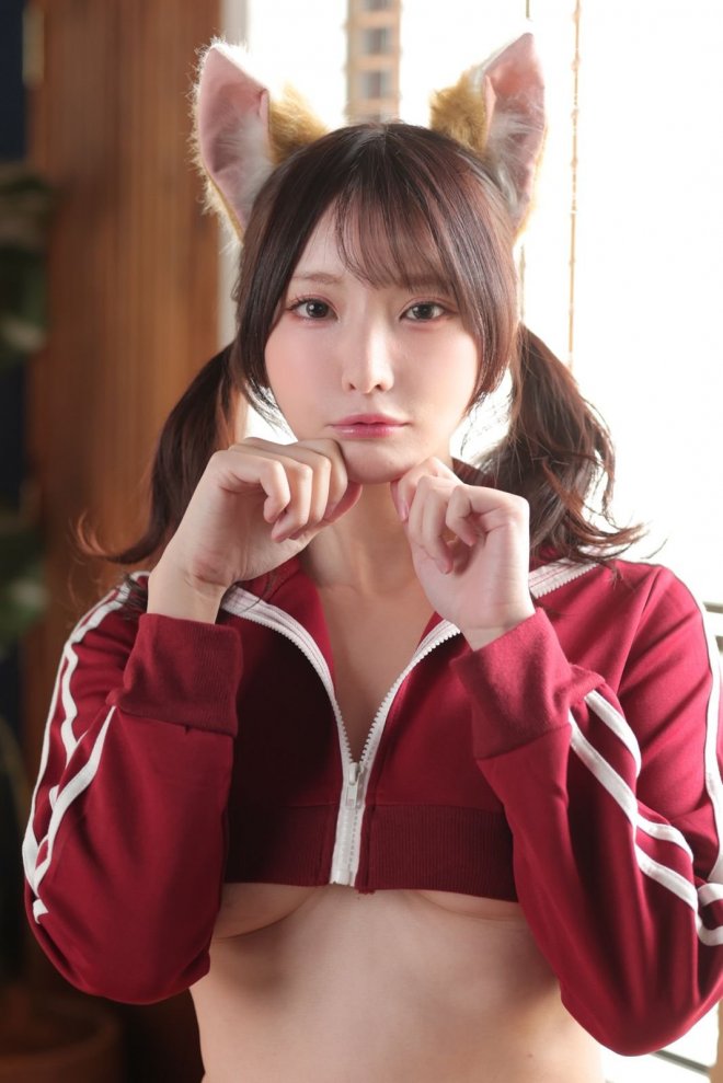 她不是那種天天曬肉型的女優,而是偶爾丟幾張清新可愛風格的自拍照,像是綁雙馬尾、穿運動服,甚至還戴兔耳朵拍寫真。