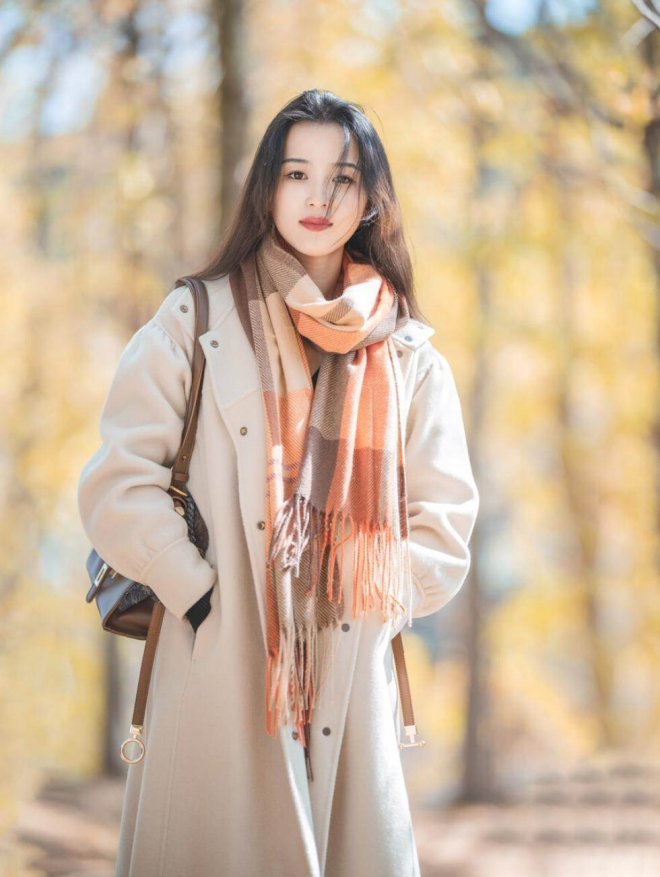 秋天和冬天,是落葉的季節,這時候如果拍照不知道擺什麼姿勢的話,不要讓自己擺拍剪刀手,試著側蹲下來,手捧樹葉,看著鏡頭擺拍,這樣就能拍出季節感,又能讓自己美美的,特別好看。