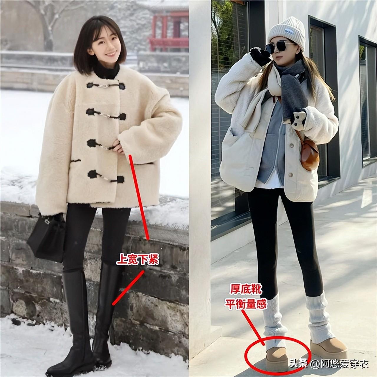 當你穿上一件寬鬆的羊羔毛外套,是不是感覺自己瞬間變胖十斤?別急,這時候一條緊身牛仔褲或者打底褲就是你的救星!